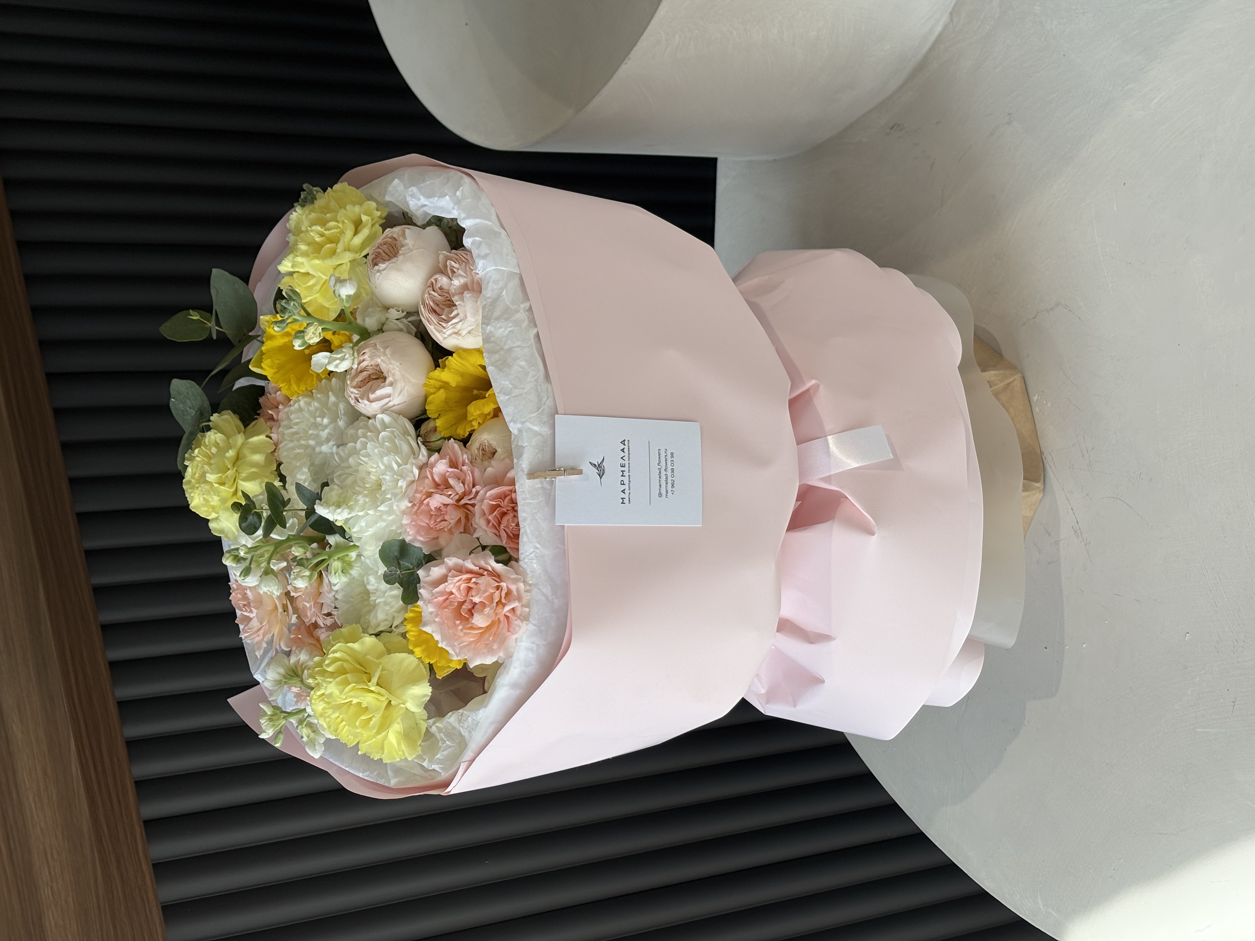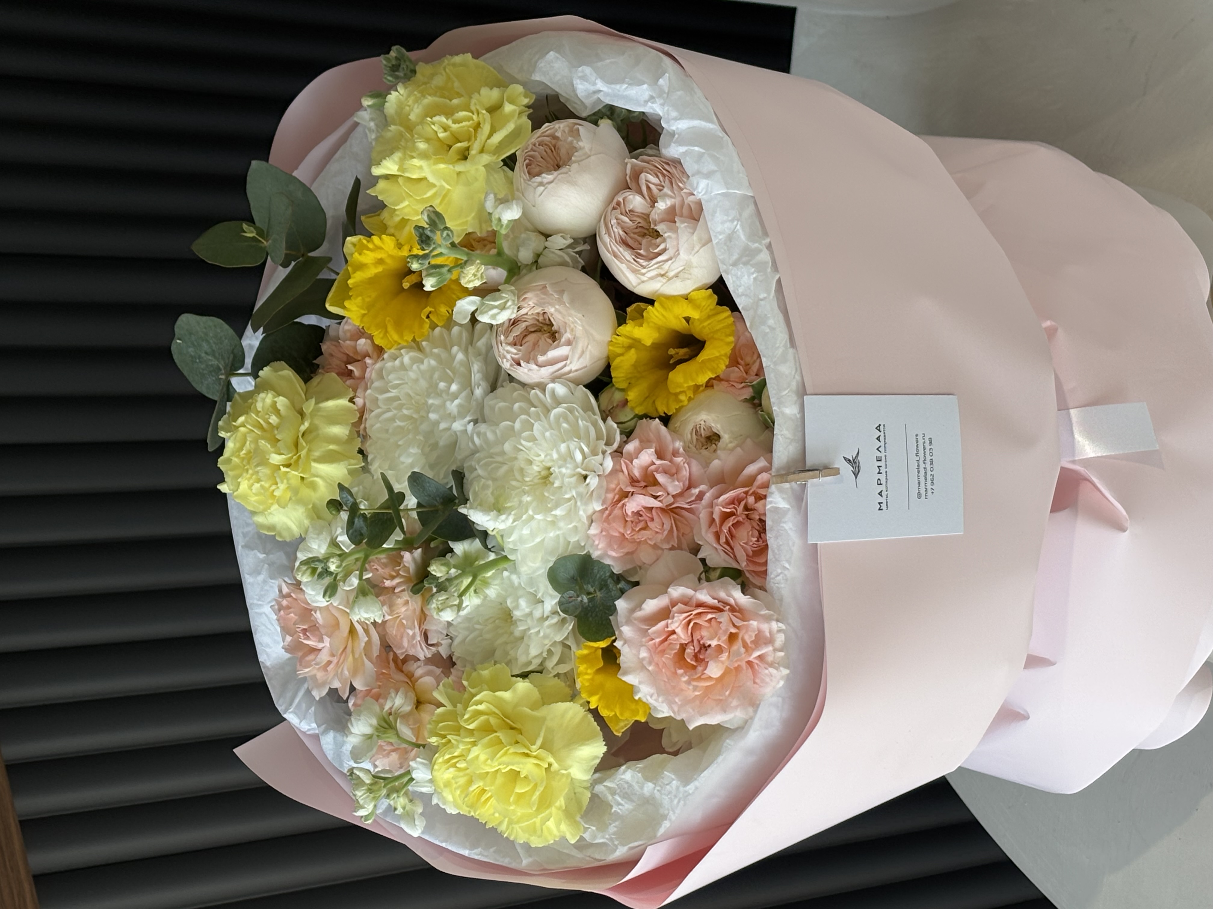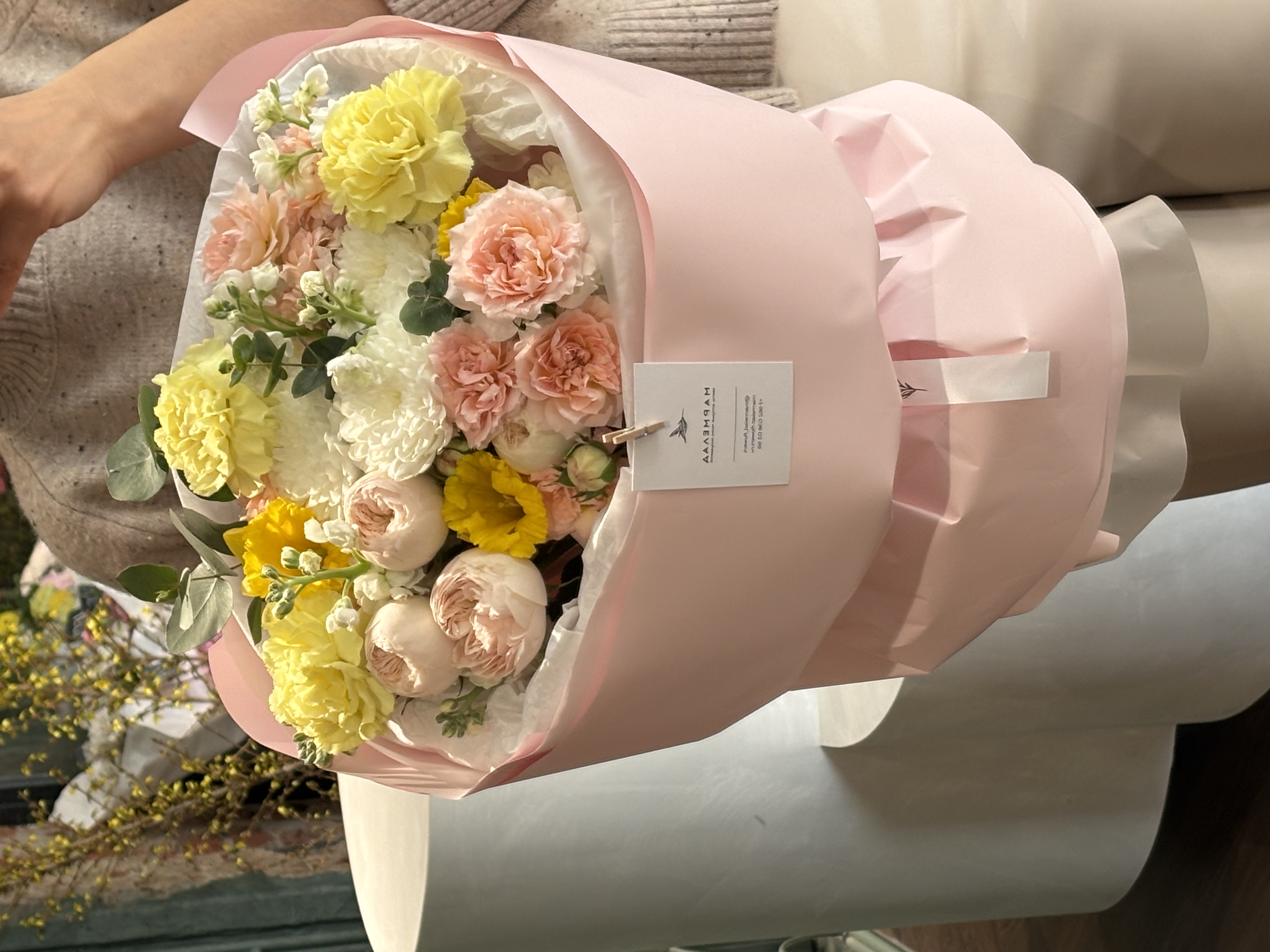 Мы пришлем вам фото готового букета, чтобы вы были уверены в своем заказе. Мы всегда стараемся чтобы фото не искажало размер и цвет