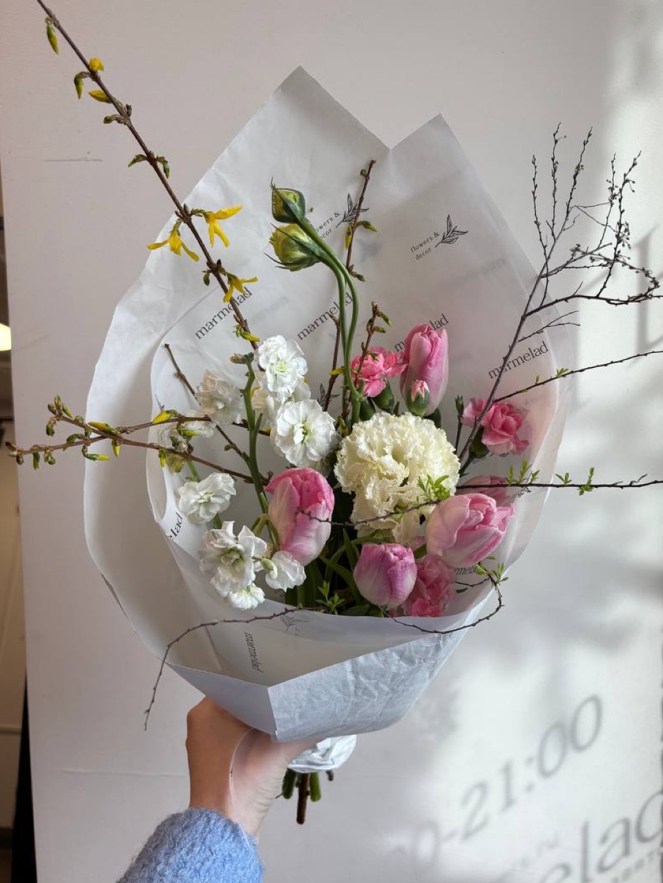 Наш ассортимент разнообразен и состоит из регулярных цветов и сезонных, которые сменяются, поэтому если каких-то цветов из предложенного букета не будет в наличии, мы всегда сможем предложить вам альтернативную замену