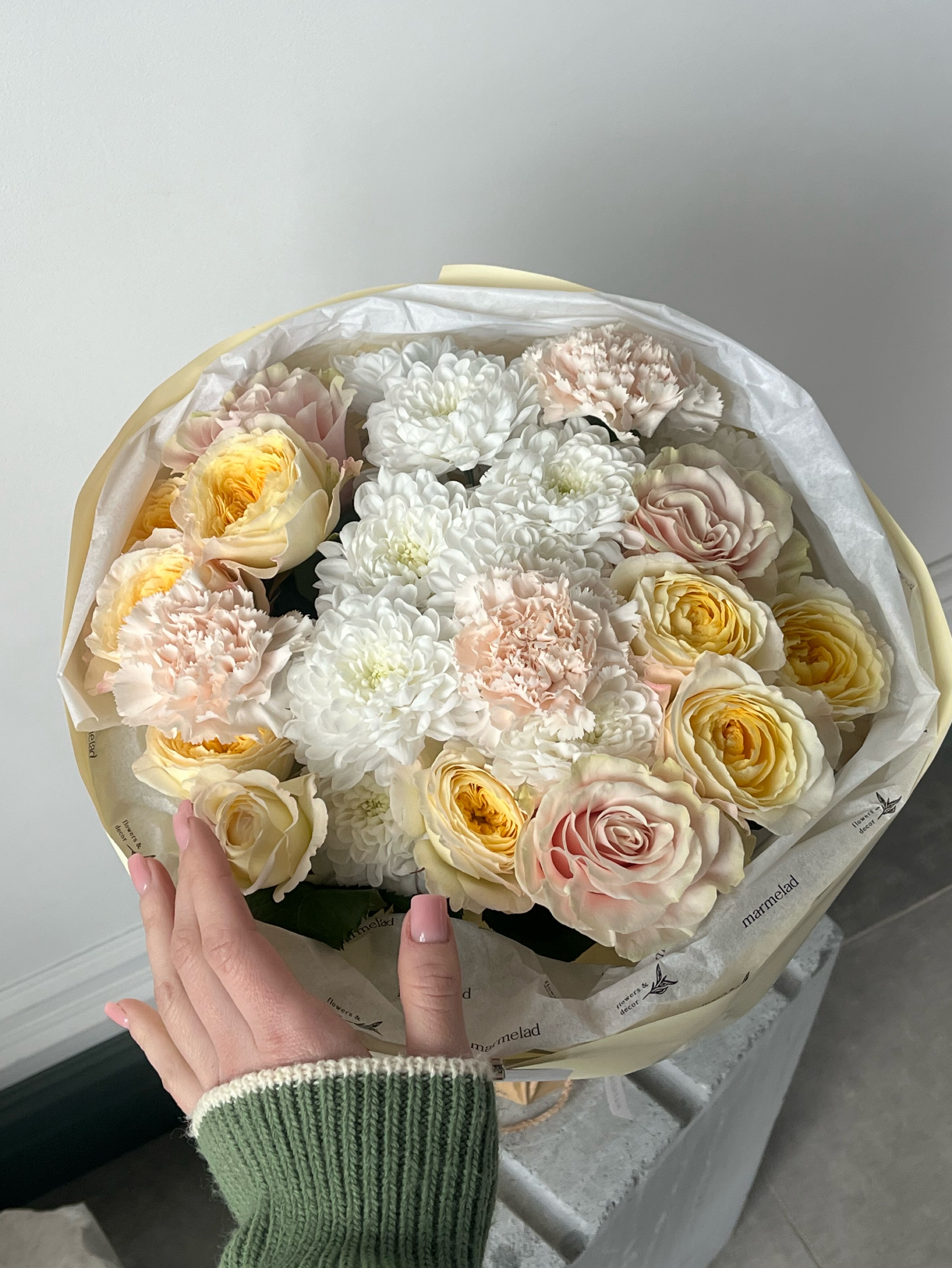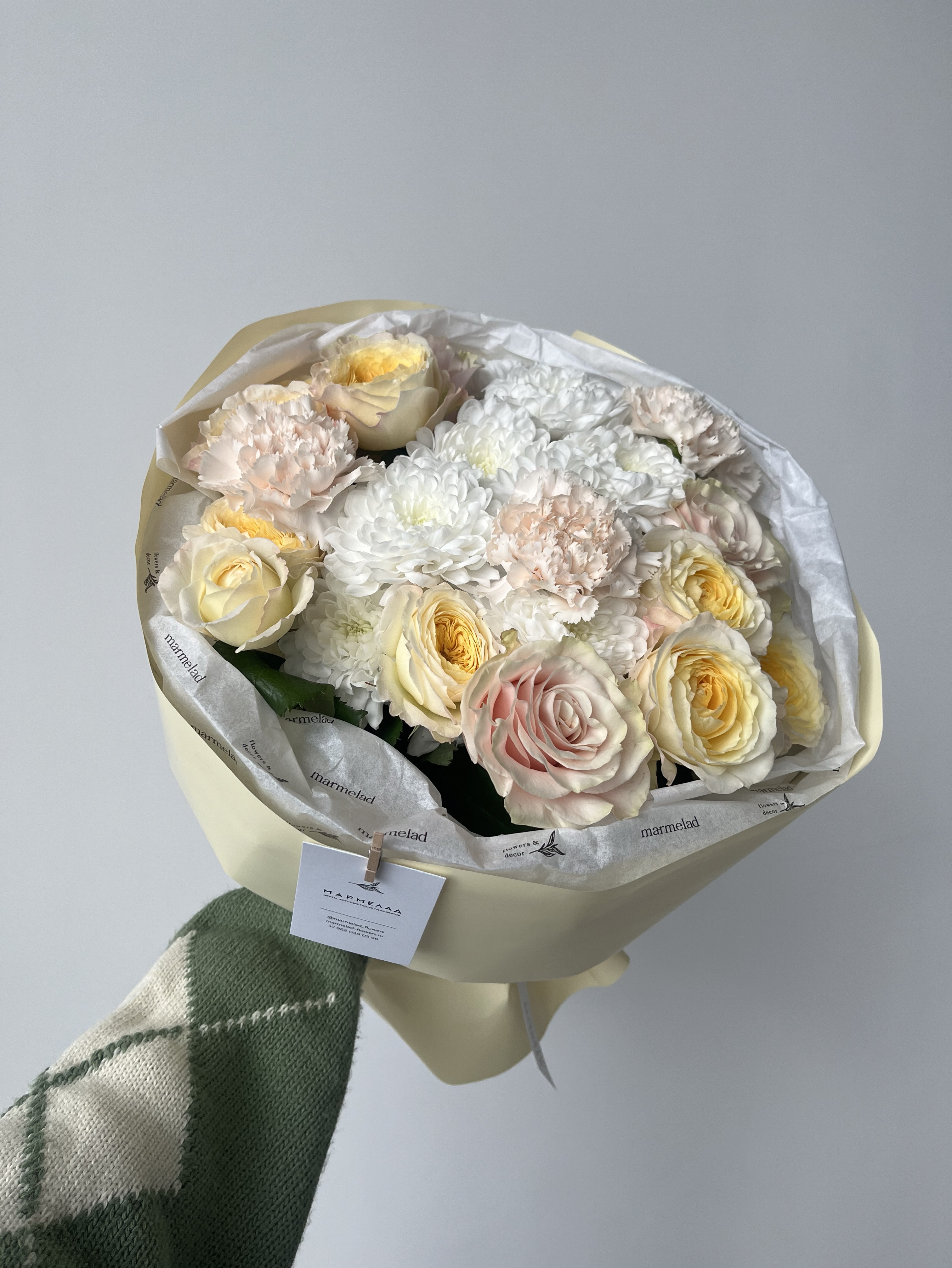 Мы пришлем вам фото готового букета, чтобы вы были уверены в своем заказе. Мы всегда стараемся чтобы фото не искажало размер и цвет