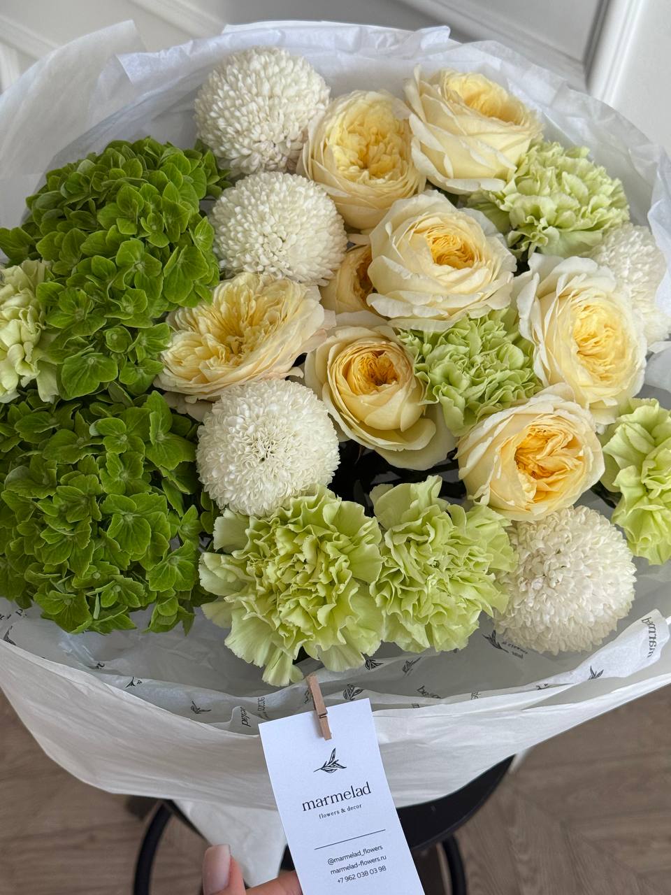 Мы пришлем вам фото готового букета, чтобы вы были уверены в своем заказе. Мы всегда стараемся чтобы фото не искажало размер и цвет