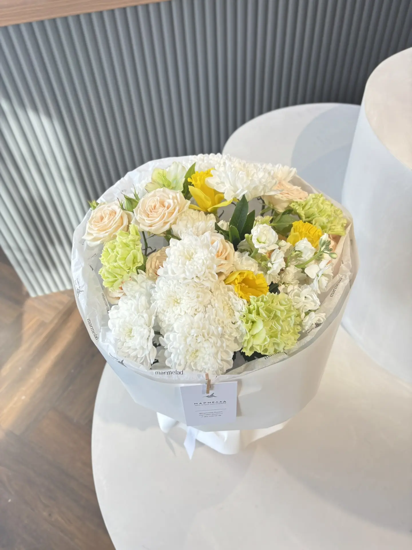 Мы пришлем вам фото готового букета, чтобы вы были уверены в своем заказе. Мы всегда стараемся чтобы фото не искажало размер и цвет