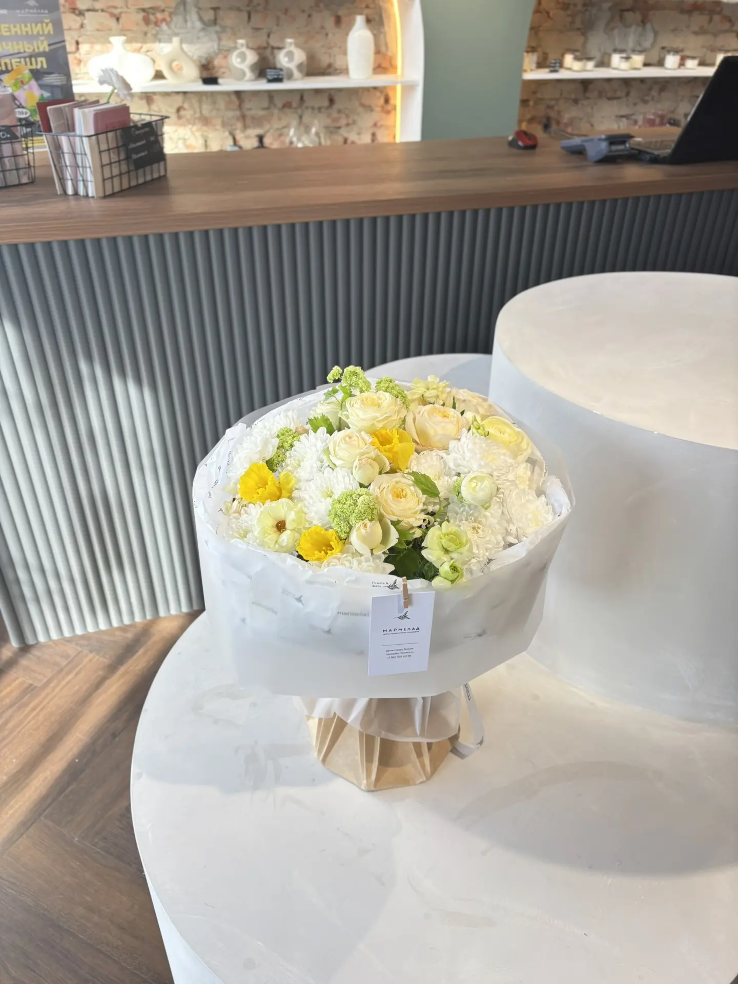 Мы пришлем вам фото готового букета, чтобы вы были уверены в своем заказе. Мы всегда стараемся чтобы фото не искажало размер и цвет