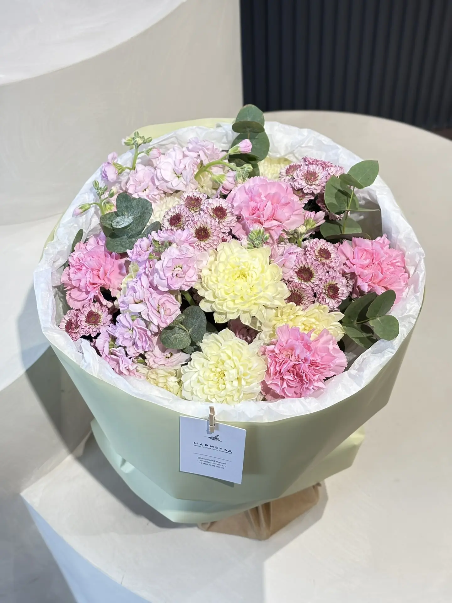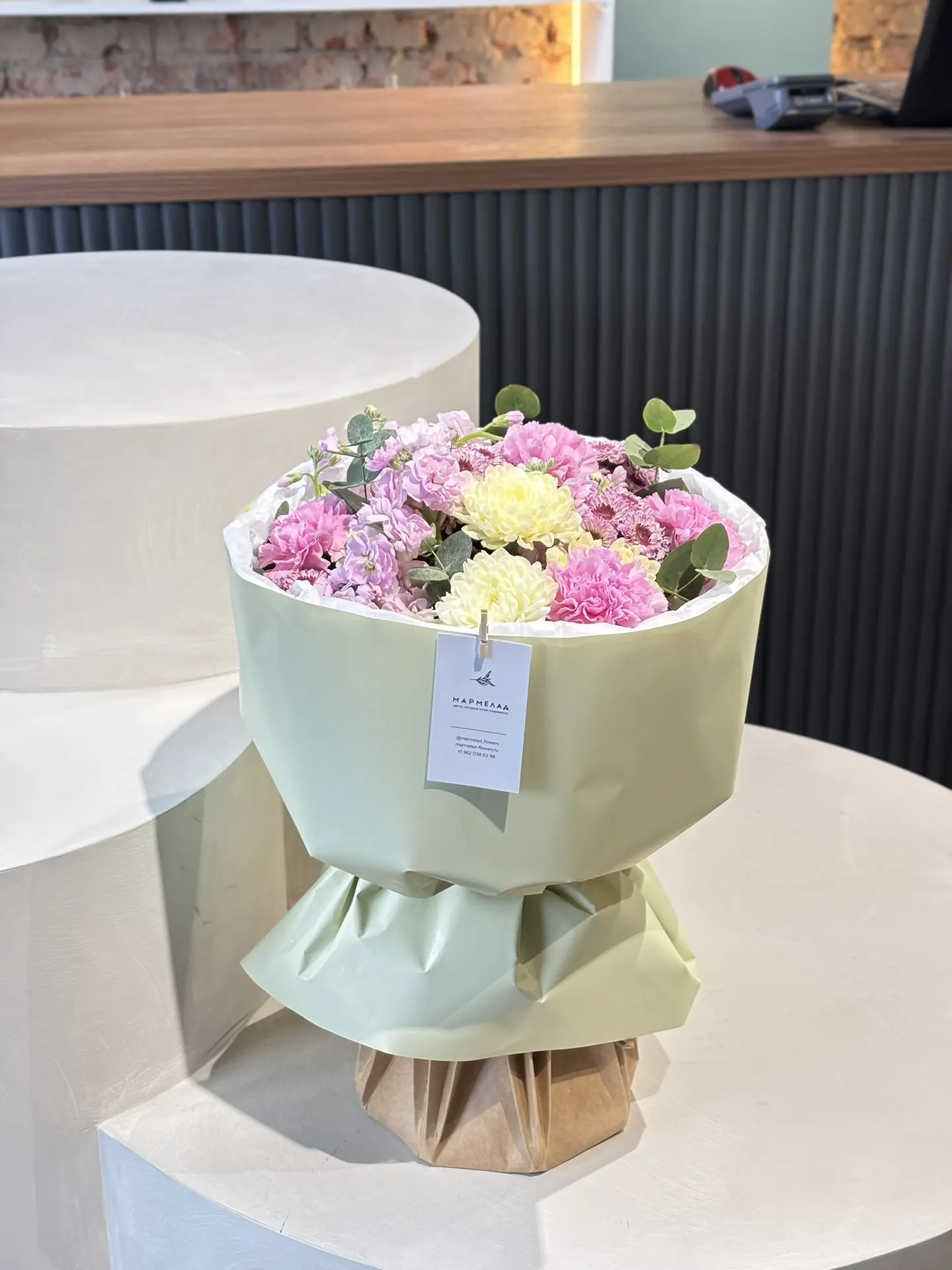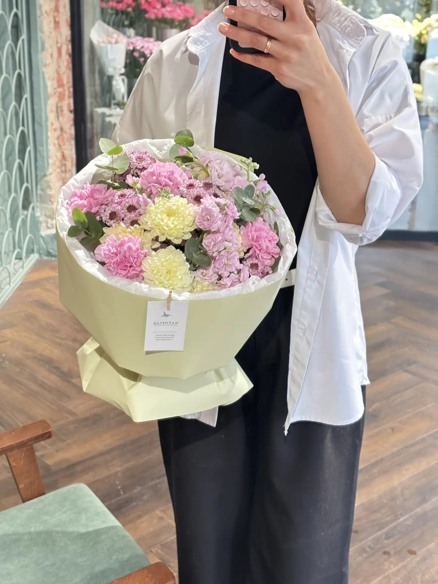Мы пришлем вам фото готового букета, чтобы вы были уверены в своем заказе. Мы всегда стараемся чтобы фото не искажало размер и цвет