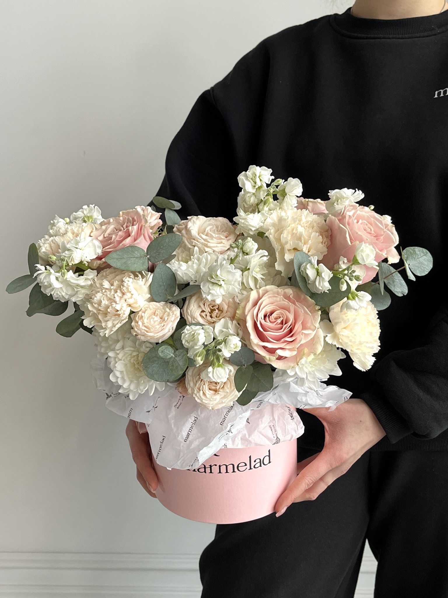 - 2 раза в неделю мы получаем свежие поставки цветов напрямую с голландских аукционов, так как очень трепетно и внимательно относимся к качеству.