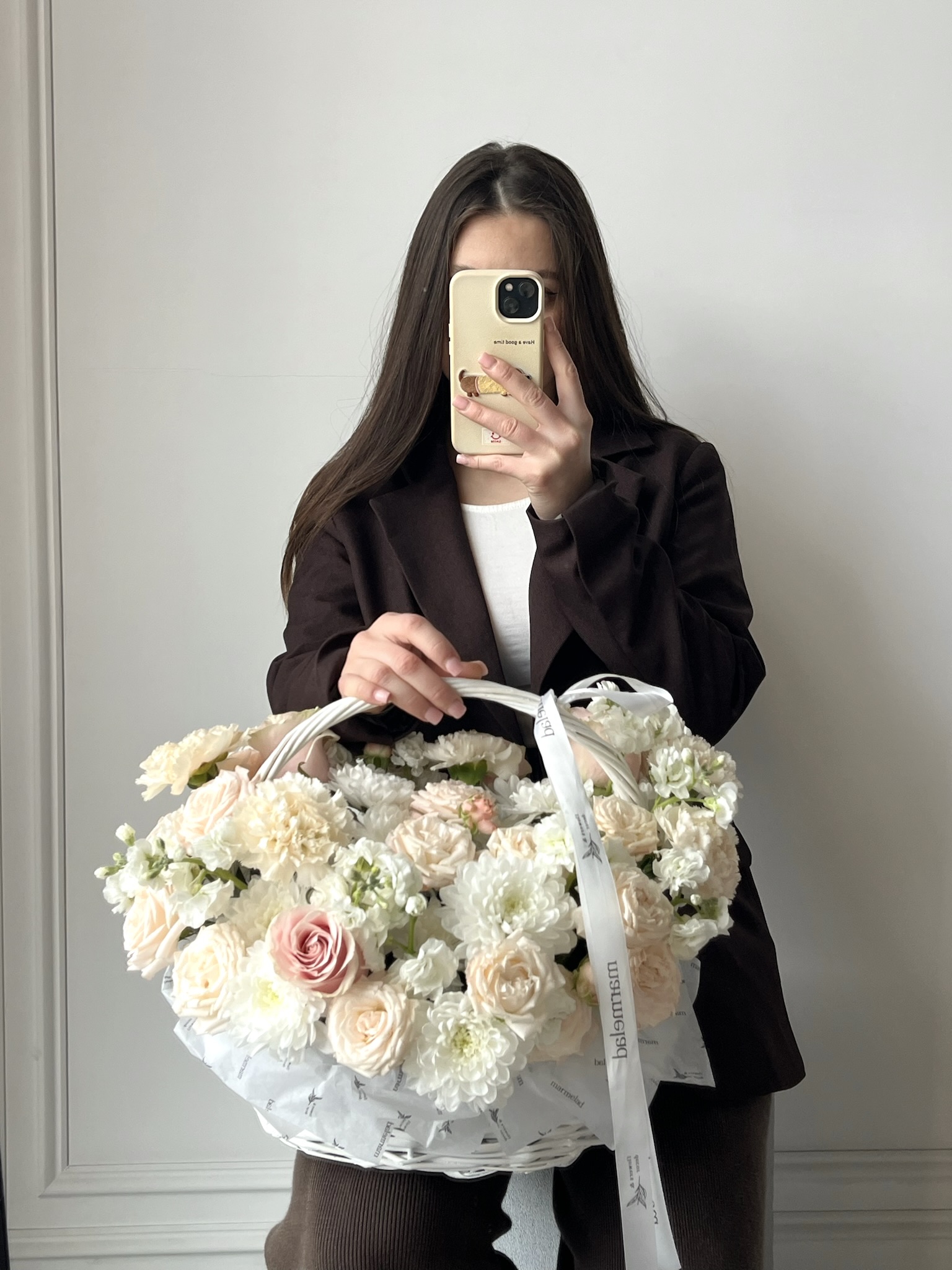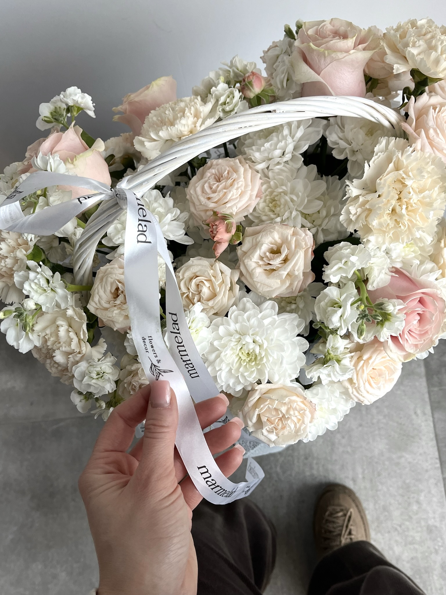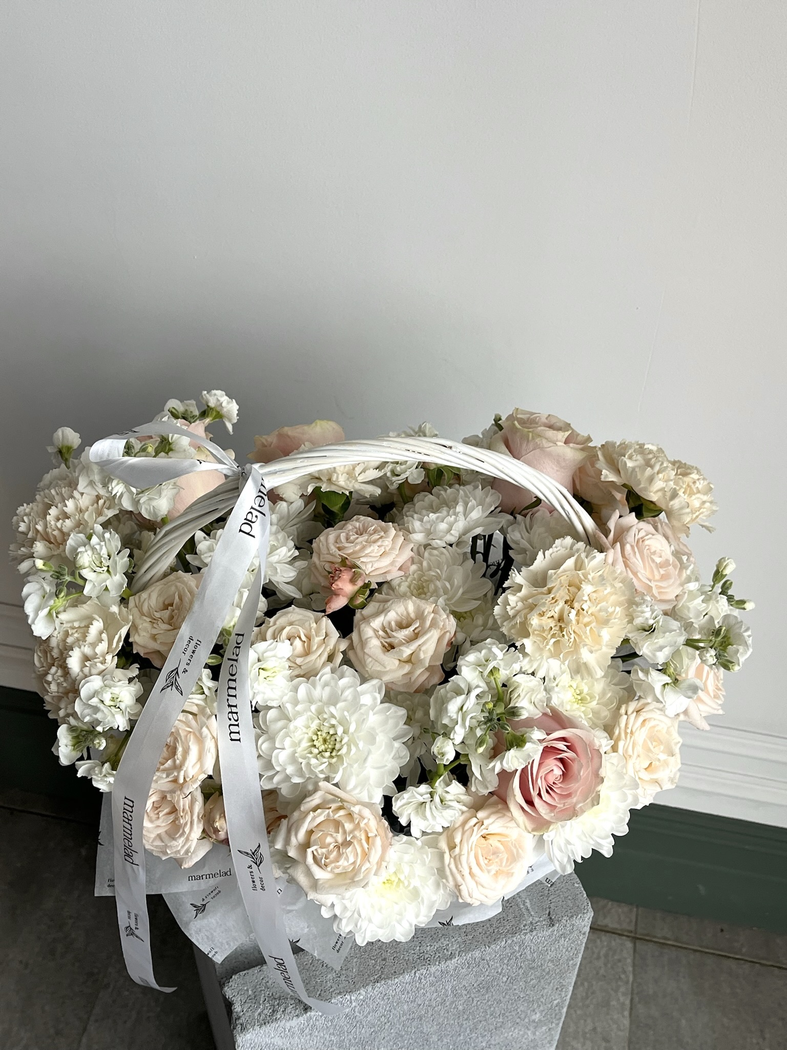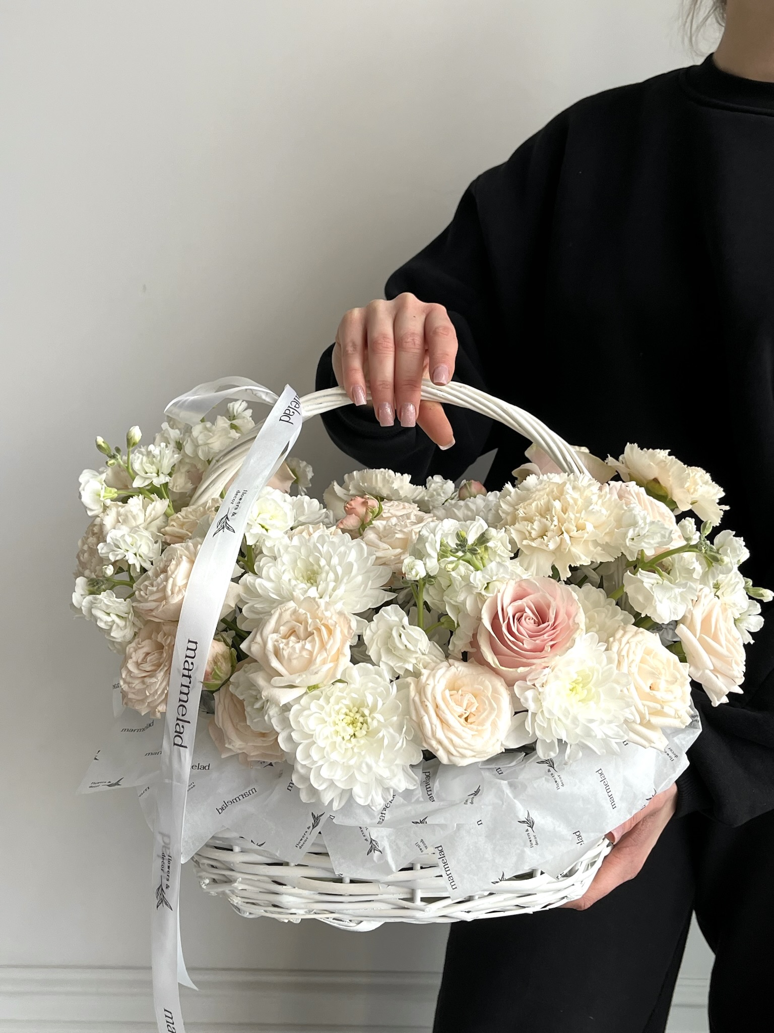 Цветочная корзина в кремовых оттенках размер M