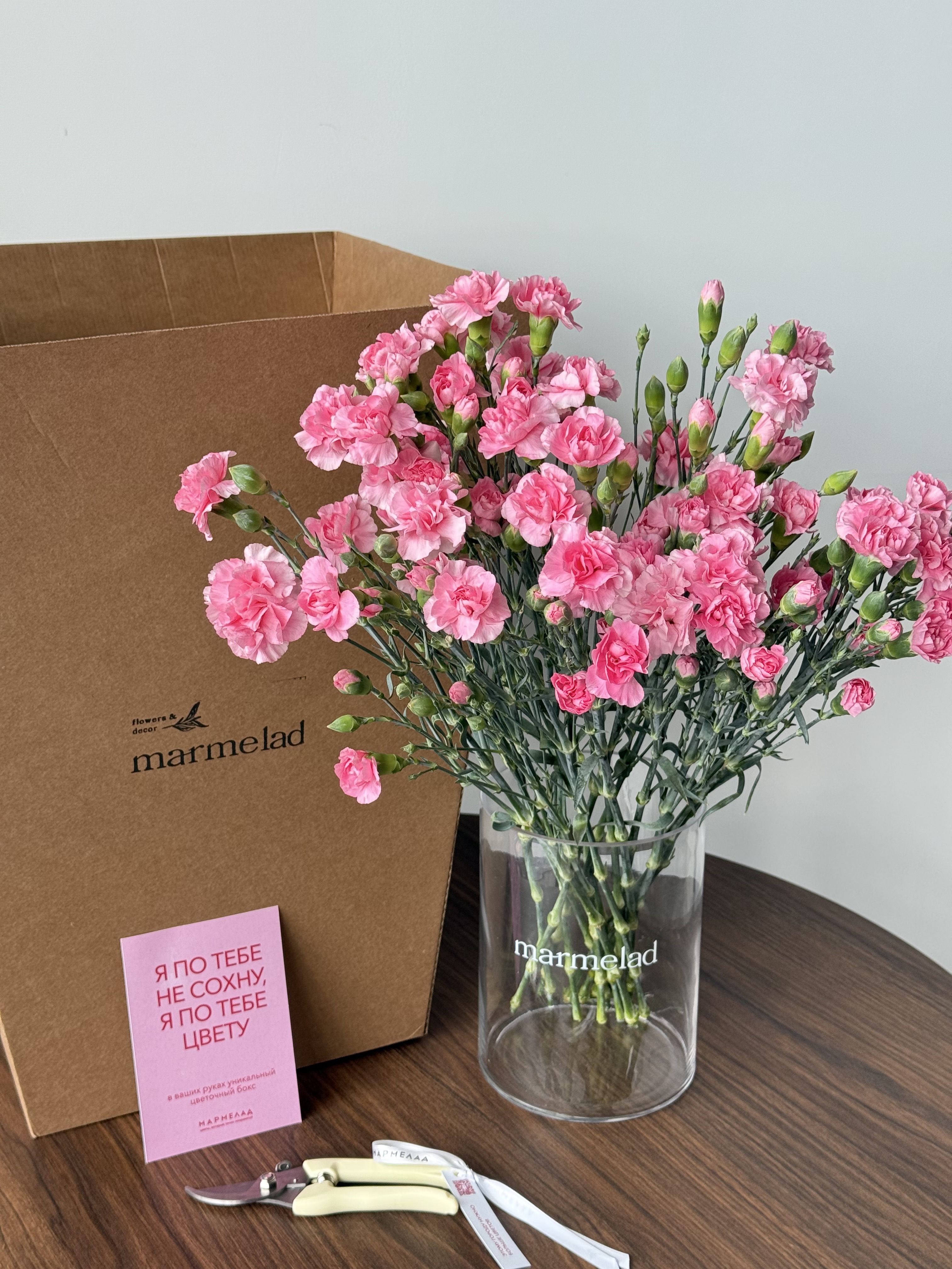 ЦВЕТОЧНЫЙ БОКС с кустовыми диантусами в розовом оттенке 15 шт