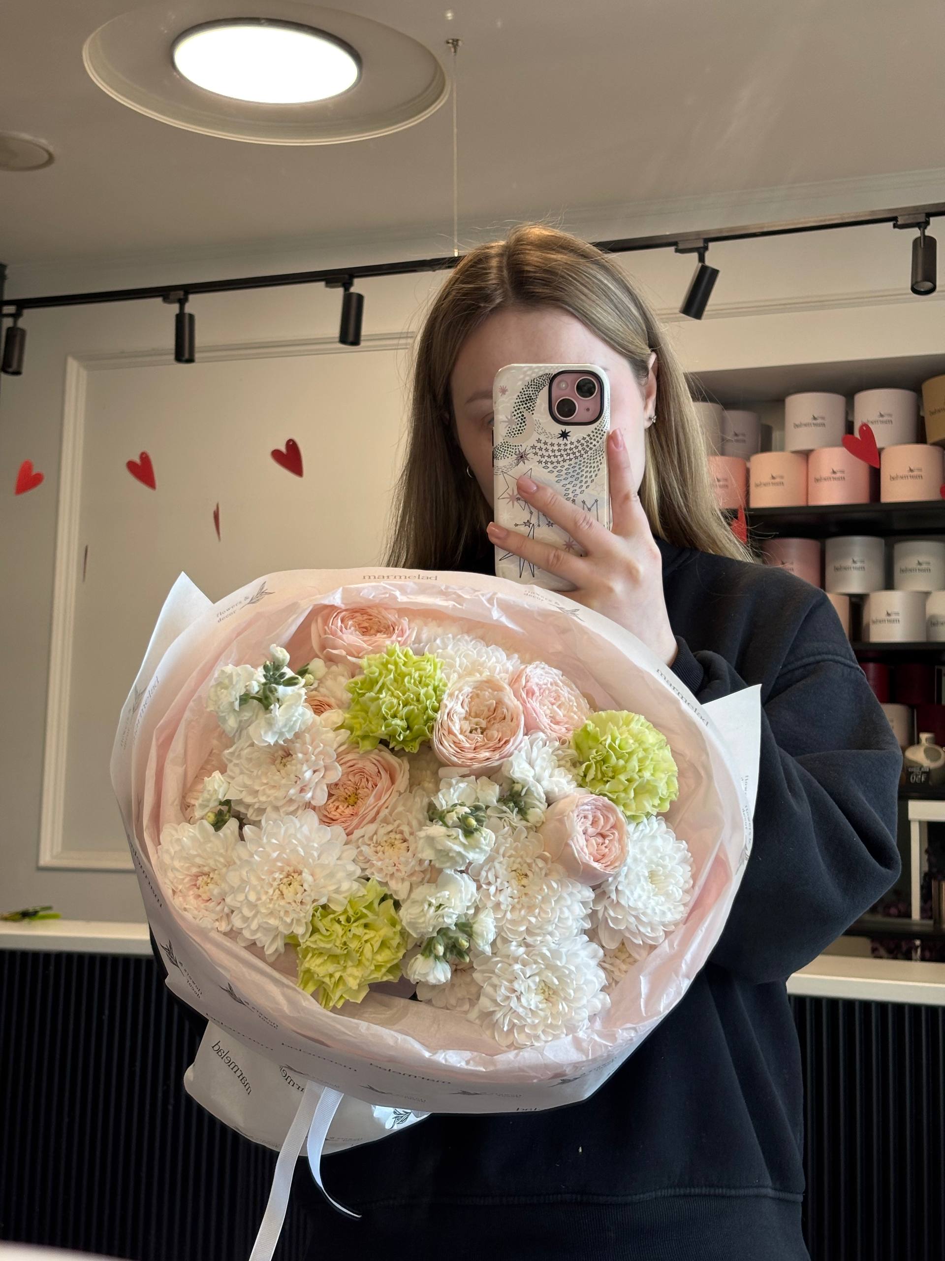 Мы пришлем вам фото готового букета, чтобы вы были уверены в своем заказе. Мы всегда стараемся чтобы фото не искажало размер и цвет